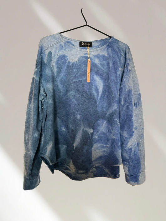 Oversized Hand Dyed Cotton Terry Top with long sleeves and dropped shoulder.