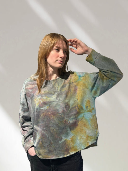 Oversized Hand Dyed Cotton Terry Top with long sleeves and dropped shoulder.